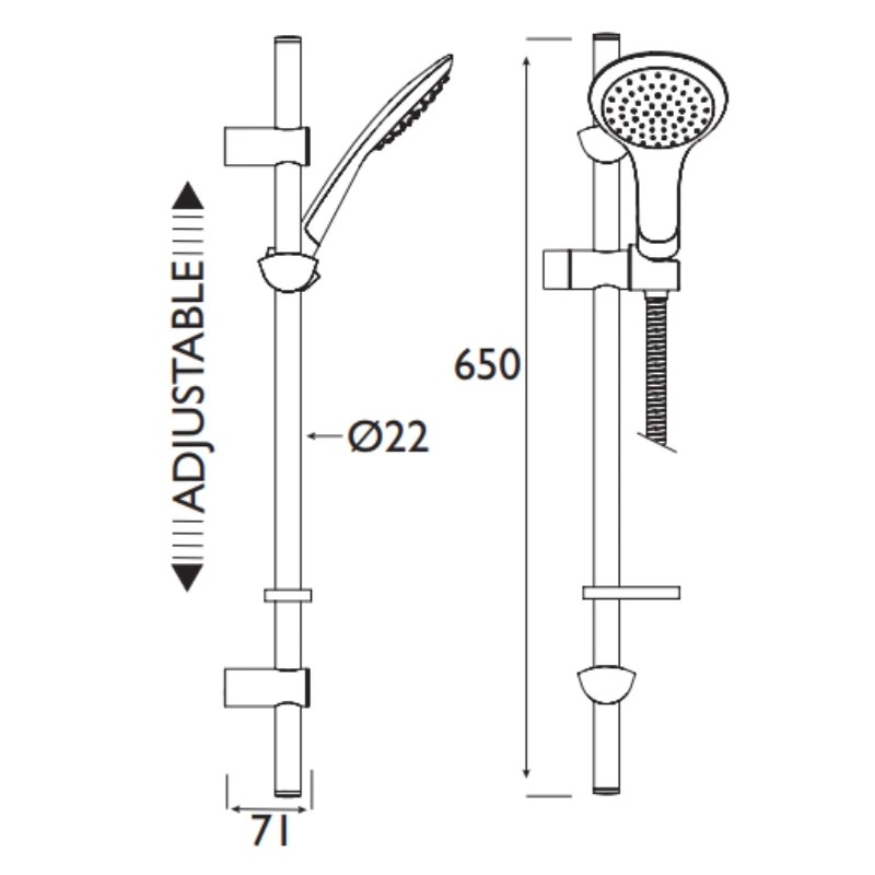 - Shower Kit includes: – Slider Rail, 1.5m Shower Hose, Hose Retaining Ring and Single Function Handset.