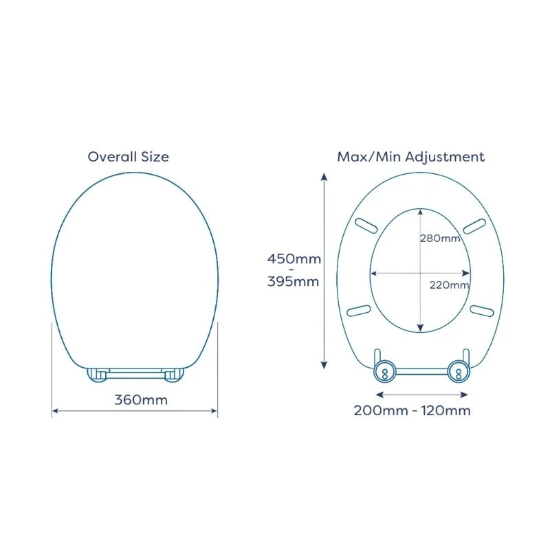 - Adjustable hinges fit all standard toilets