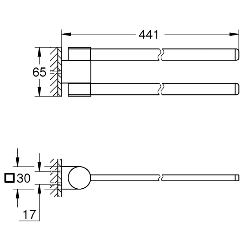 It’s never been easier to create a beautiful bathroom design. Just add the beautifully made GROHE Selection double towel holder, which has concealed fastening to ensure a beautiful finish. With a slim, stylish shape and crafted from the finest materials, it looks seamless in any modern bathroom. Just add your favourite towels! It also features GROHE technology. The durable GROHE StarLight finish uses physical vapour deposition (PVD) for an extra level of scratch-resistance. And with our GROHE QuickFix installation system and clear step-by-step instructions, it has never been easier to add a designer accessory that looks good and makes life in the bathroom even more enjoyable. Perfect for towels up to 400mm. And springs inside the hinge guarantee a safe fixation to the wall even if wet and heavy towels are dropped on it. GROHE Selection accessories – precision engineering, highest quality materials and a unique, timeless design.