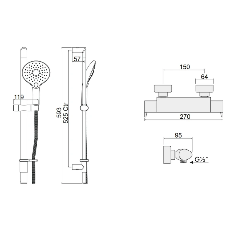 Bar Mixer Showers - Pipe Centers 150mm