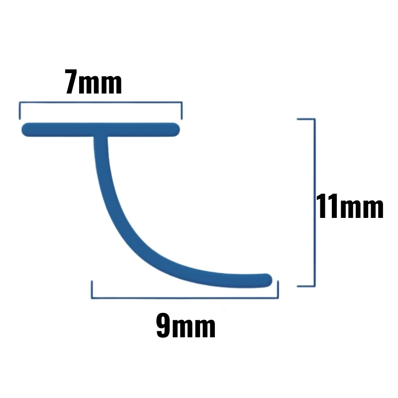 - Soft rubber seal designed to slide into a metal channel or a frame