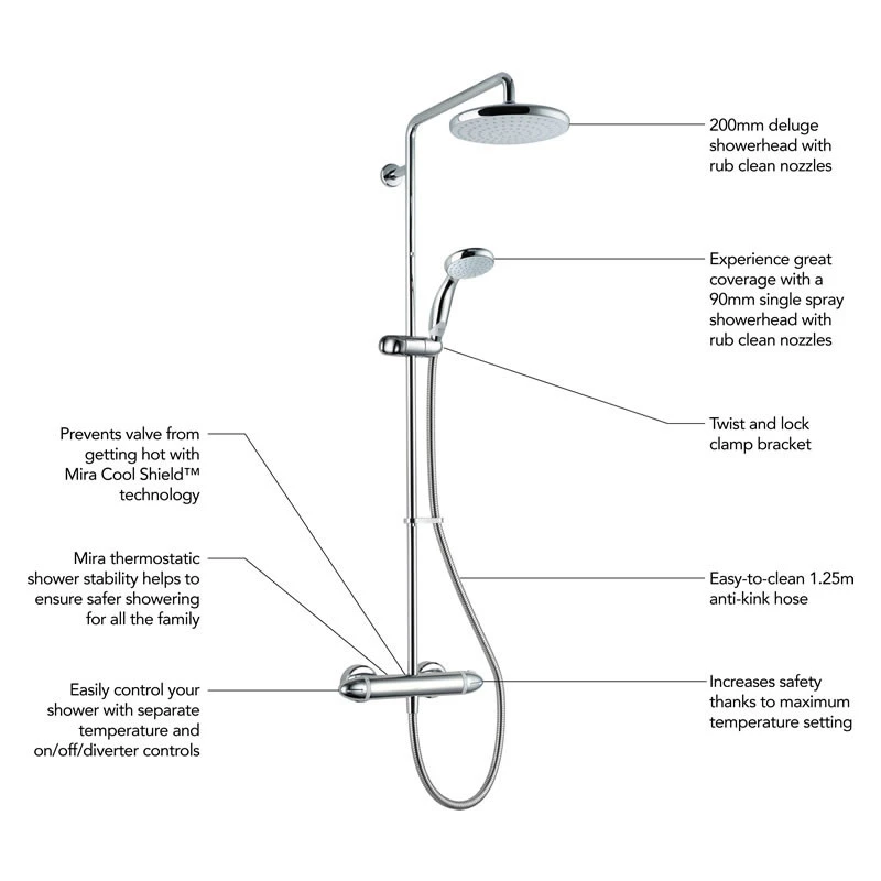- Mira Cool Shieldâ„¢ technology ensures the valve doesn’t get hot while showering.