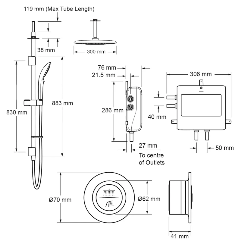 - The right fit for you – Choose from either High Pressure or Pumped valve options and ceiling mount or rear-fed showers.