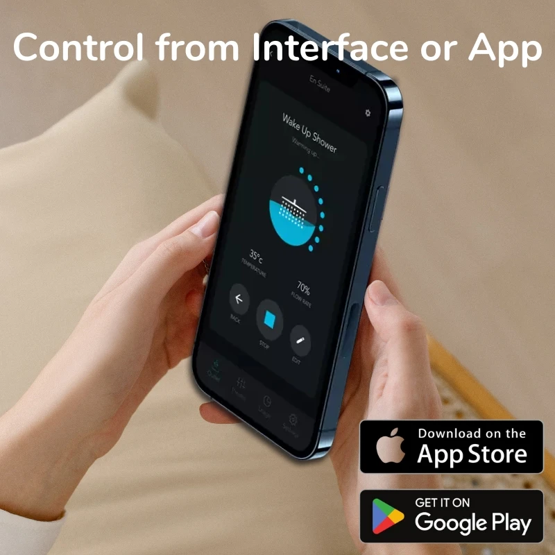 Mira Platinum transforms your shower experience with precise controls and personalised settings – either on the digital control, by app or by voice. The stunning display means your shower controls, settings and clock with timed pre-sets are always clearly visible.Mira Platinum connects to your smart home. So you can ask Alexa to warm up your shower, or set a schedule in Google Home. Digital control puts it all at your fingertips – from precise heat and flow, to pre-sets like Eco mode, or max temperature for family-safe showering. Energy-efficient control hub offers up to several months’ battery life. To recharge, simply pop it out the magnetic cradle and connect it to a USB-C plug. With the Mira Shower App, your perfect shower literally runs itself. Choose from a menu of settings or create customised experiences for everyone, and every moment.